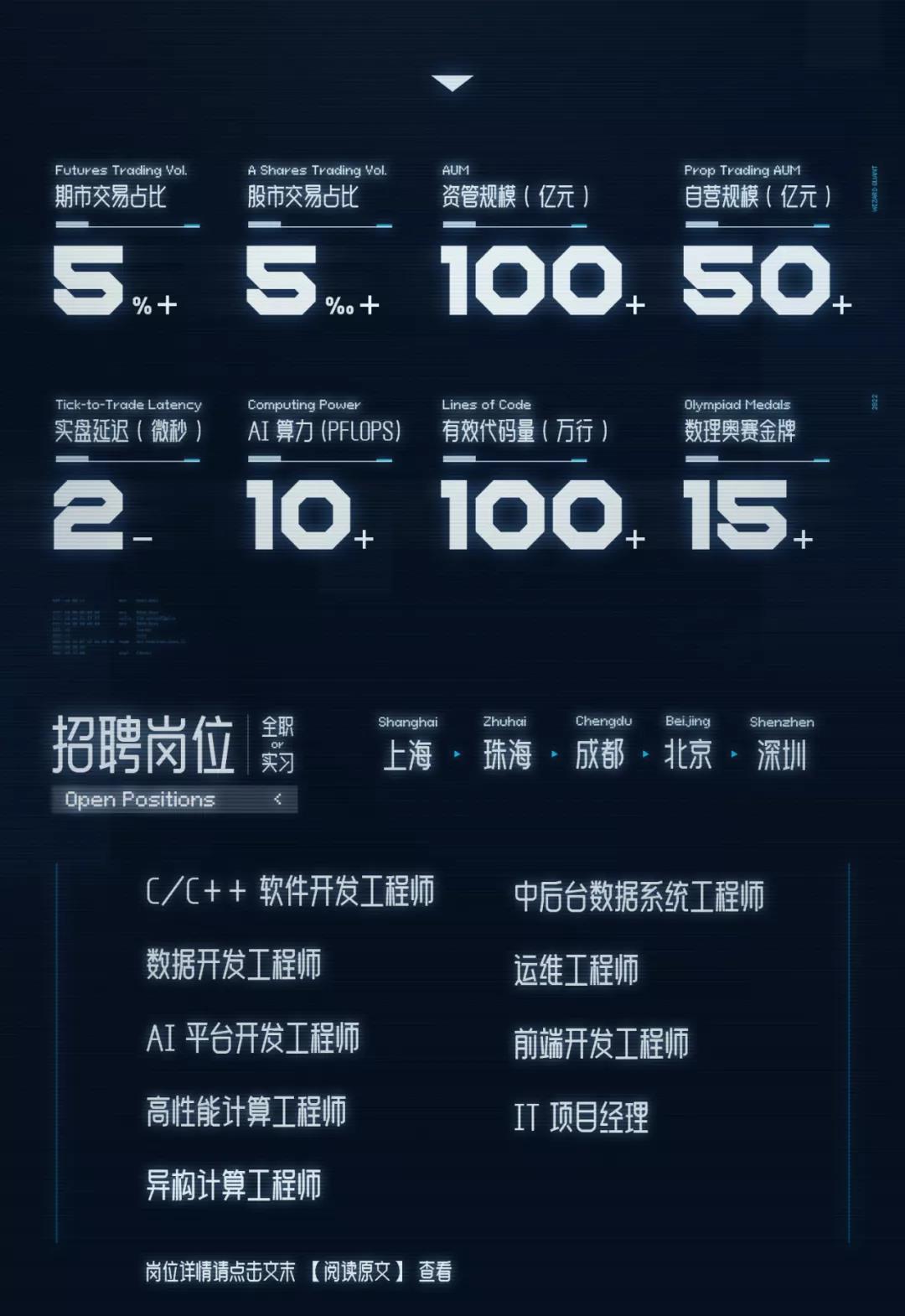 未来量化IT大神们!想先人一步,拿到国内头部量化对冲基金公司的Offer吗?简历投起来!