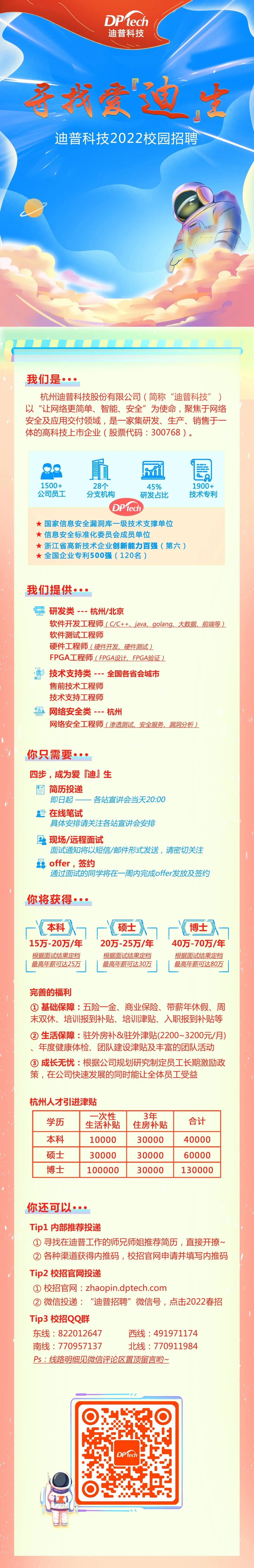 【公司信息】迪普科技为浙江省第一家上市的网络安全公司,成立于2008年,于2019年4月上市,拥有专业的技术团队,50%为研发人员,每年将销售收入的25%投入研发,重视科技研发。