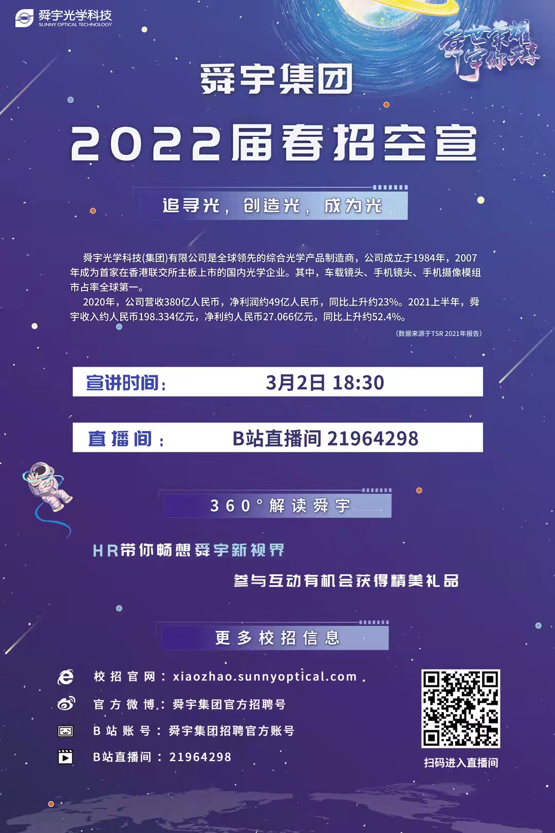 3月2日18:20舜宇集团2022春招空宣