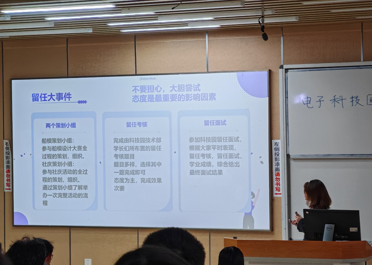 随后,各部门工作计划也得到了详细阐述。技术部计划在 3 月进行三次授课,并于 4 月 13 日进行船模答疑,同时在五一假期布置留任考核题;行政部负责船模大赛、例会、社庆等活动的新闻稿撰写;宣传部负责各类活动的海报制作,还将开展 PS 授课;外联部负责物资管理、教室借用和场地布置等,确保活动顺利开展。人才培养与留任计划同样是本次例会的重点。留任考核由技术部布置多样化题目,成员任选一题完成,重点考量态度。最后通过留任面试,结合平时表现、考核成绩和学业成绩,确定最终留任结果。