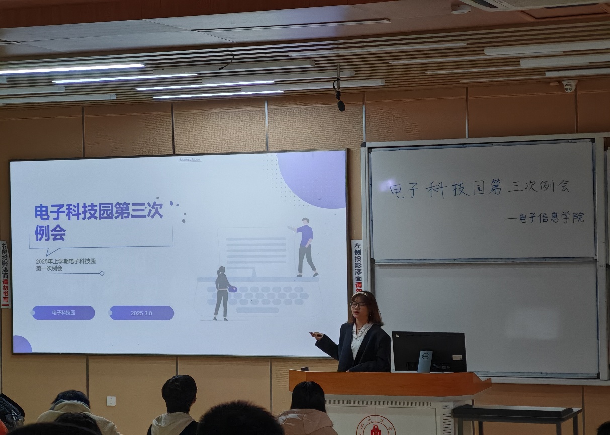 江安校区综合楼C座C303顺利开展。电子科技园的全体干部与干事均准时出席了本次例会。