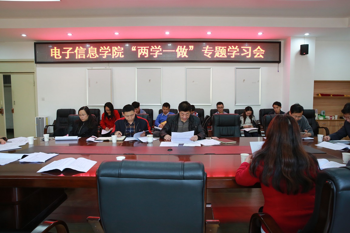 “两学一做”专题学习会在望江校区基础教学楼A303会议室举行。学习会由学院党委书记蒋斌主讲,学院党委副书记陈笃海主持。学院全体党委委员、纪委委员、教工党支部书记、系和教研室主任以及部分学生党支部书记参加了会议。