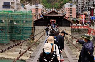 跟着讲解员的步伐,我们来到了当年红军战斗过的泸定桥。同学们走在泸定桥上,尽管桥面上已经铺满了坚固的木板,但桥依旧会左右摇晃,走到桥的中央处,更是摇晃的更加剧烈,桥下的河水愈加汹涌,同学们的心更是心惊胆颤了起来。很难相信,当时的二十二位勇士,是怎样冒着枪林弹雨和踩着没有木板的铁索夺下泸定桥的。战斗虽然已经结束,但是红军战士们英勇顽强、不怕牺牲的革命英雄主义精神却永不逝去。