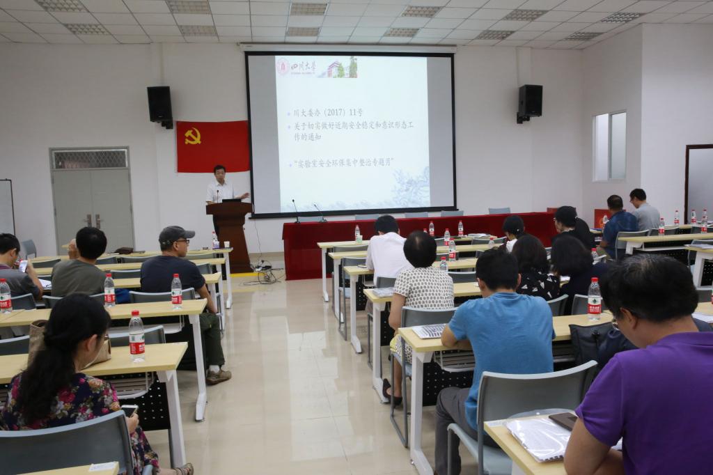会上,邰明松书记首先传达了学校《关于切实做好近期安全稳定和意识形态工作的通知》,以及对开展“实验室安全环保集中整治专题月”的相关工作进行了部署。邰书记强调,安全稳定工作一定要高度重视,全学院要提高做好安全稳定工作的责任意识,认真履行职责,强化安全稳定工作责任制落实,切实增强风险防控意识,把安全稳定工作扛在肩上、落到实处。他要求学院开展一次对实验室、办公室的消防安全检查工作,全面过滤安全隐患和薄弱环节,还要加强对学生的安全教育,组织好节日期间学生活动,安排好学生生活。