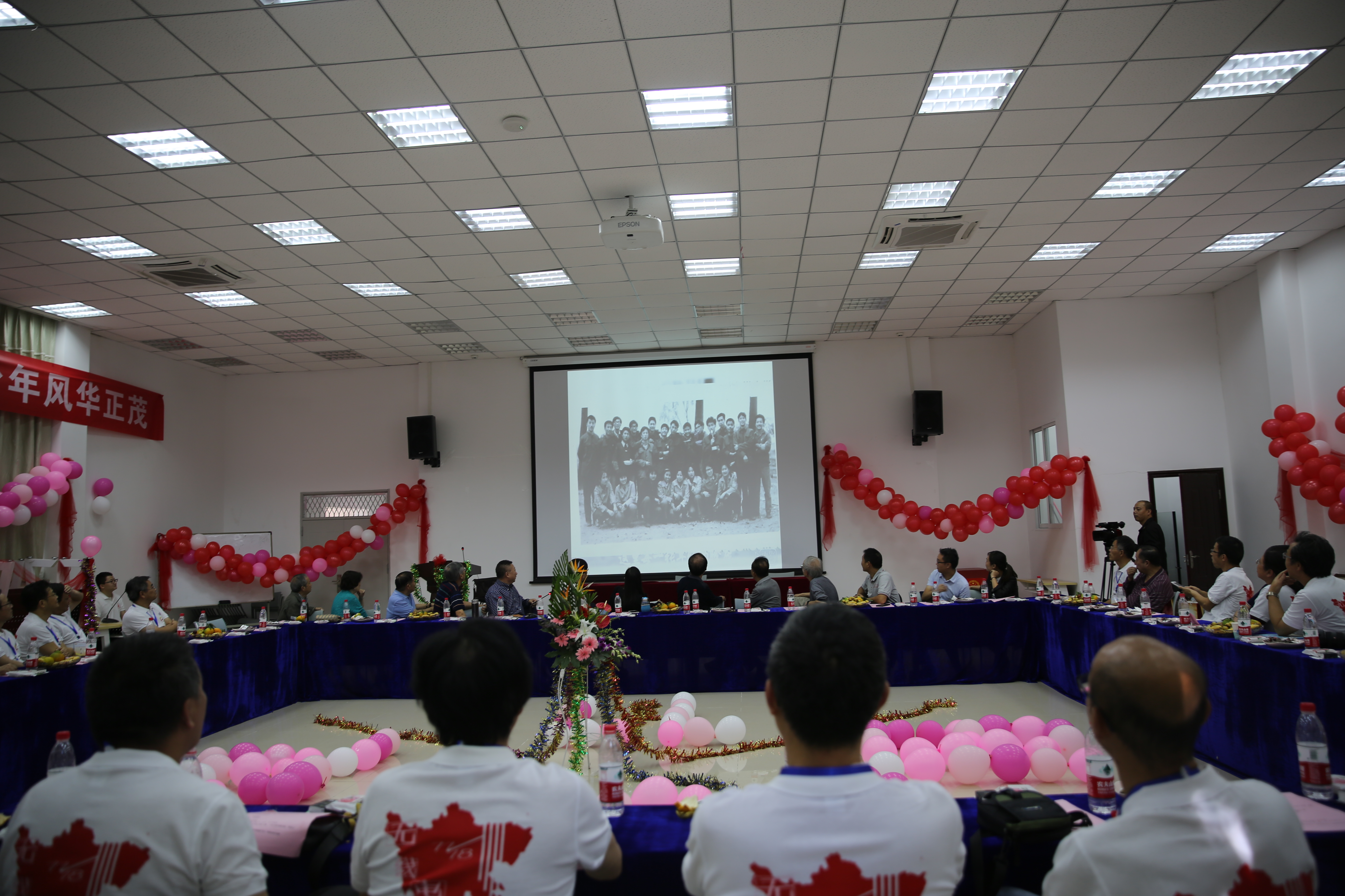 和学生发展三个方面介绍,用数据直观地展现了这四十年来学校和学院的蓬勃发展。冯院长表示,集聚英才,追求卓越,欢迎校友向学院介绍优秀的人才。之后进入师生自由发言时间,伴随着老照片的播放,大家感慨良多,纷纷分享改革开放四十年来的感受,会场气氛融洽。
