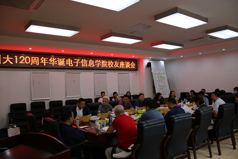 黄卡玛院长,副院长冯国英教授,副院长何小海教授,光电系主任王琼华老师均有出席,本次座谈会由陈笃海书记担任主持,共有来自63级至12级的近三十名各年级的校友代表参加。